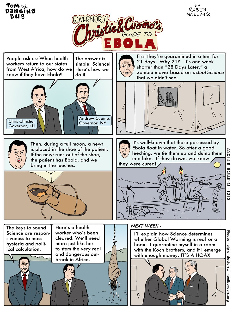Tom the Dancing Bug, IN WHICH Governors Chris Christie and Andrew Cuomo explain how to tell if someone is possessed by the Ebola.