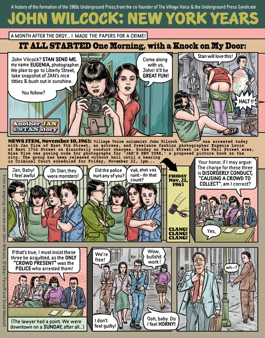 The tribute to Jan and Stan continues with a pornography arrest in New York's Financial District. A true life tale from John Wilcock, New York Years.