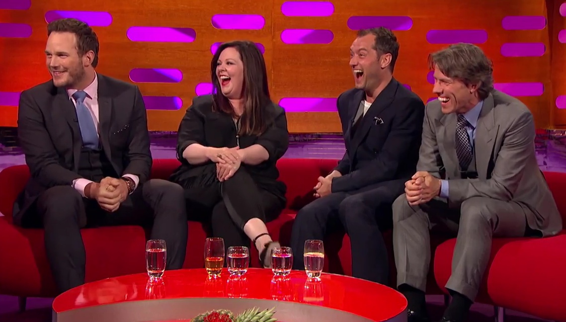 There he revealed his love for the trashy reality show The Only Way Is Essex aka TOWIE, which is the essentially the British equivalent of The Jersey Show. Even better, Pratt absolutely nails the accent featured on the show and impresses Jude Law and Melissa McCarthy. "Like, honestly, or whatever."