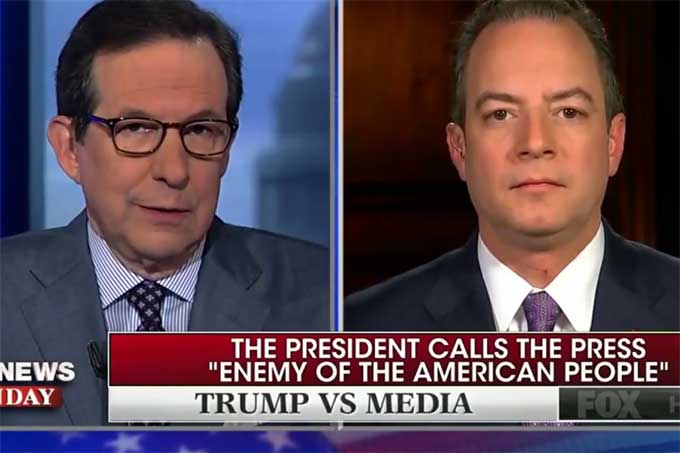Interesting exchange between Fox's Chris Wallace and White House Chief of Staff Reince Priebus (who went on Fox on Sunday to complain about the "fake news" coverage of Trump's Russian connections).