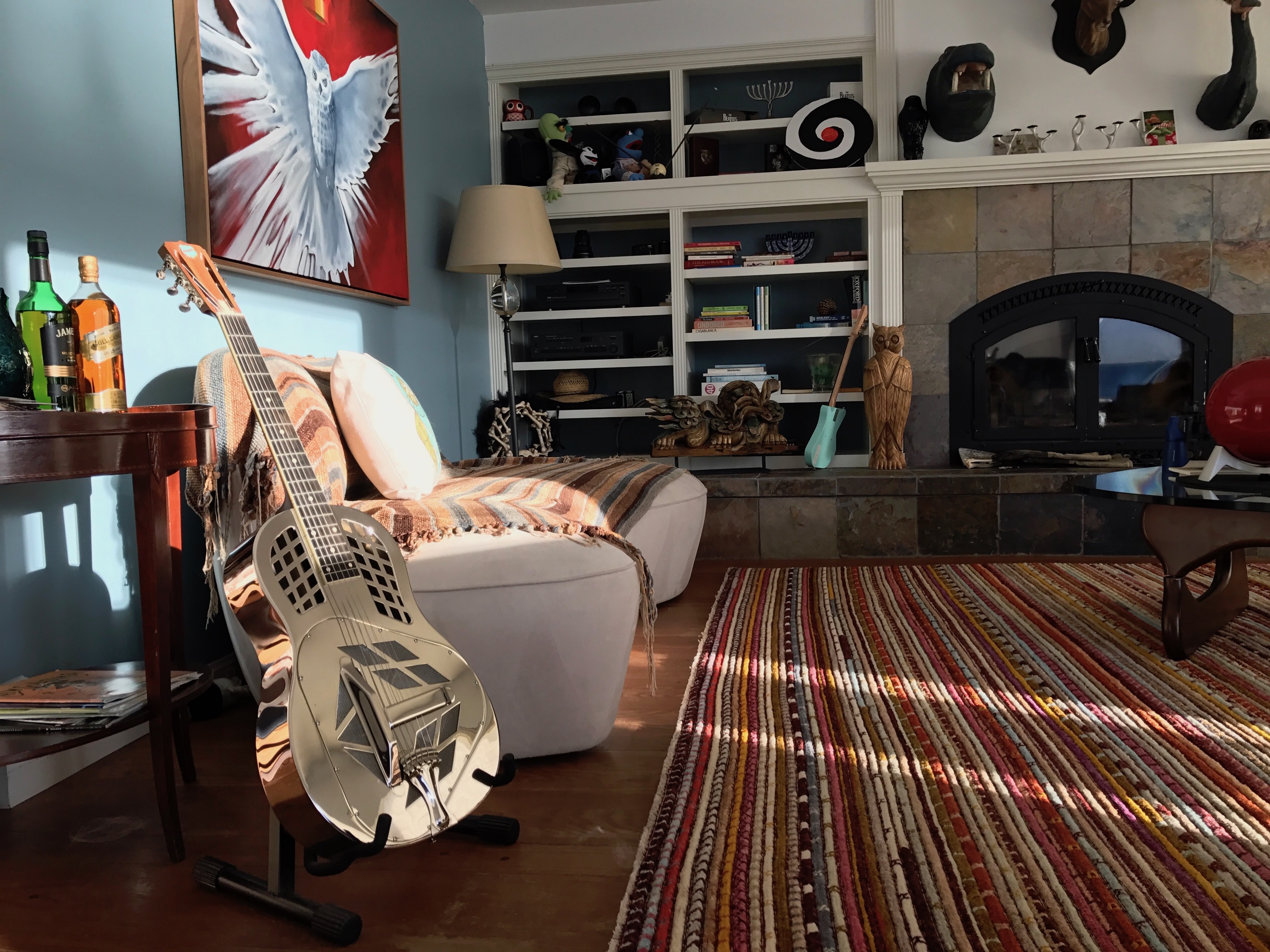 I have treasured this guitar, and I've played the shit out of this guitar. One thing I've never been able to do is clean this guitar. I have tried and tried and tried to keep it shiny and nice, but guitars are made for playing. Skin oils seem to stick to the "German Silver" nickel/steel body like mad. Friends would come over to "jam" and just leave another layer of human gunk on it.