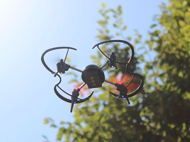 The Micro Drone 3.0 can reach speeds of up to 45 mph, letting you capture wide swaths of landscape for up to 8 minutes straight. It captures 720p HD footage, and can be piloted up to 500 feet away with its handheld controller.