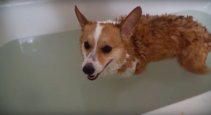 Giving a Corgi – or any pup for that matter – a bath can be quite the challenge. Just hearing the word "bath" will have them bolting out the doggie door. But here's a sneaky trick that landed Sneakers into hot water before she even realized what was happening. It's simple and definitely worth a try!