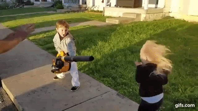Kid gets his hands on a leafblower and instantly transforms into a supervillian