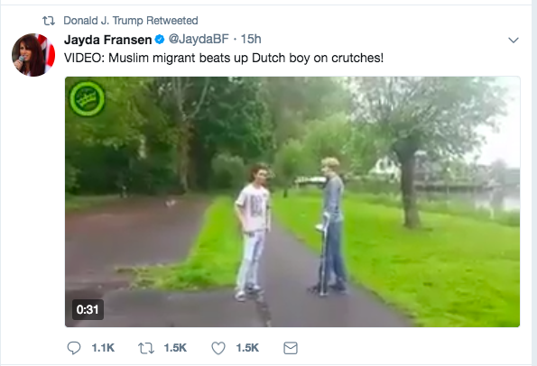 Donald Trump retweeted anti-muslim videos posted by Jayda Fransen, the deputy leader of far-right political group Britain First — and a criminal convicted of racially aggravated harassment who is currently facing more hate crimes charges in the UK.