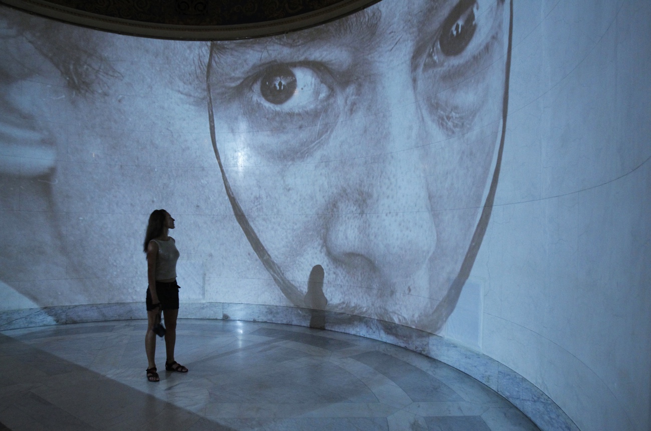 [PHOTO: A visitor looks at a projection of a picture of Salvador Dali during a presentation of a new exhibition of his work at Moscow's Pushkin Museum September 2, 2011. REUTERS]