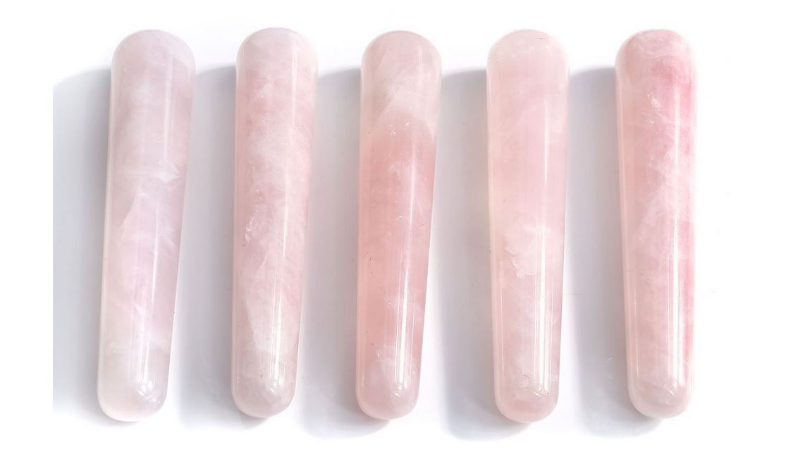 Exhibit A (above) is the Jovivi Handmade Natural Rose Quartz Gua Sha Scraping Massage Tool Massage Wand For Acupuncture Therapy Stick Point Treatment. It is 10cm long, $14, and comes with a free bag.