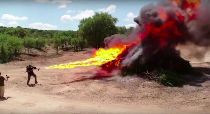 To drive the point of the Not a Flamethrower's not being a flamethrower home, the folks at DriveTanks.com subjected the Not a Flamethrower to the Pepsi challenge against a Vietnam-era M9 flamethrower and a XM34. Seeing how much more destructive these two weapons are compared to Musk's torch makes me glad that it's definitely not a flamethrower that the Boring Company was selling.