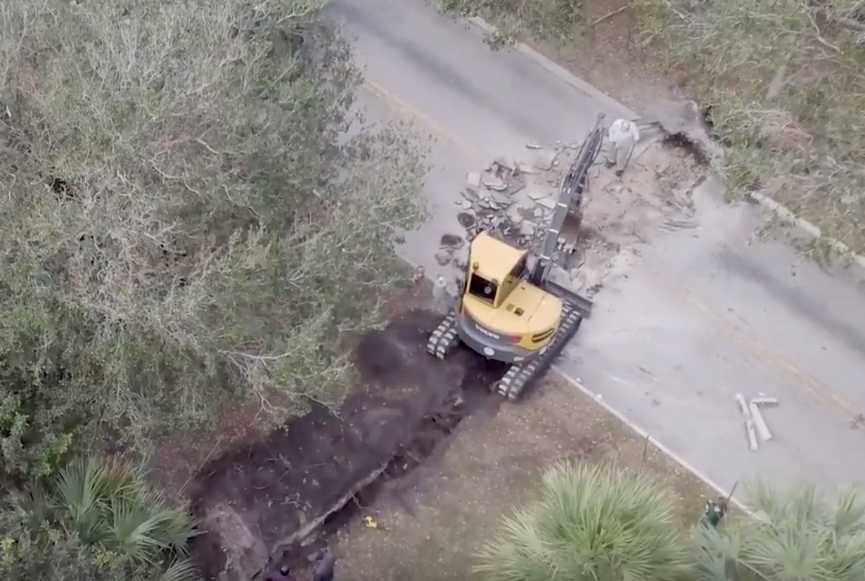 Public works employees called to the scene of a sinkhole just north of Miami, Florida quickly found an electrical cord in the ditch. Turns out the, sinkhole was actually an unfinished 150-foot-long tunnel to a bank across the street. From the New York Times: