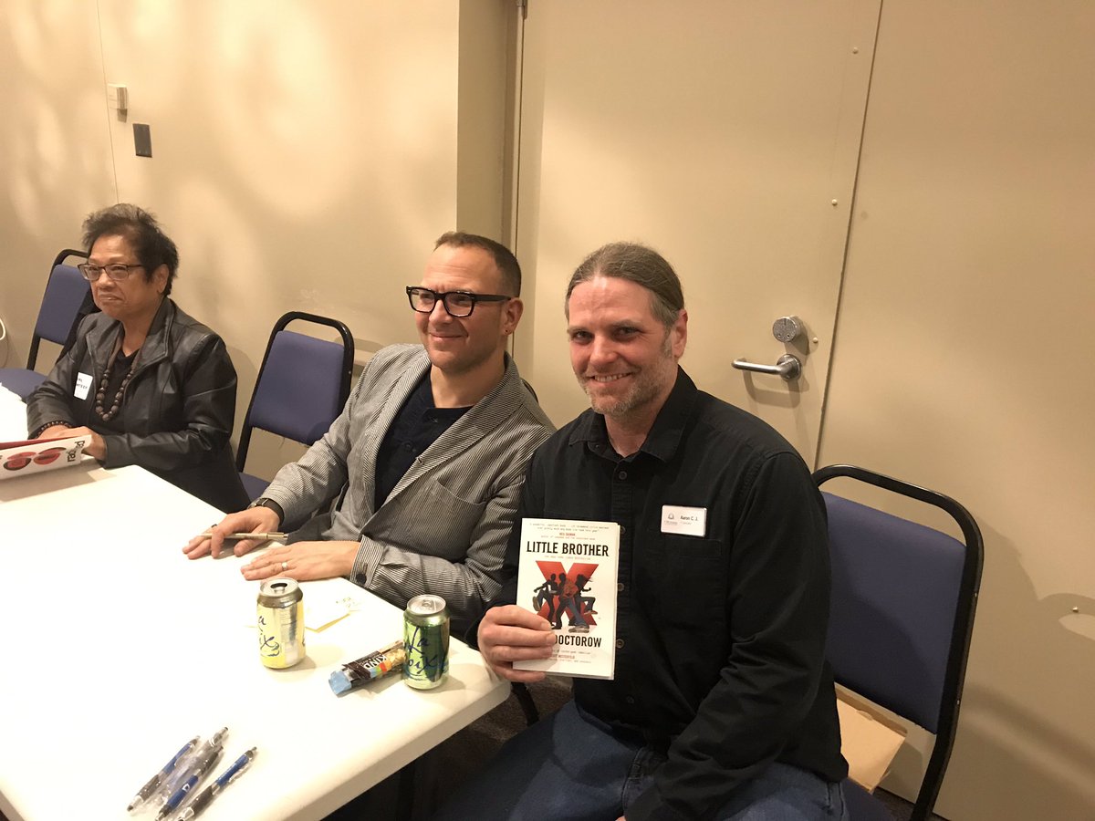 We had a fantastic time on Tuesday at the Ft Vancouver Library Revolutionary Reads event for Radicalized, my latest sf book. Tonight, I'll be in Seattle, appearing at the the Central Library at 7PM. From there, I finish the tour with a weekend at Wondercon in Anaheim. See you there (tell your friends)! (Image: Fort Vancouver Library)