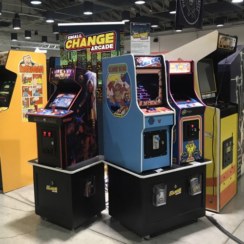 From Small Change Arcade: "Each game is meticulously scaled to match the original. Custom built in the Haight, San Francisco. All games run on original licensed circuit boards, no emulators or multi-game bootleg boards. No LCDs are used either. Each game has a custom built or difficult to source CRT monitor that accept proper 15khz RGB video signal."