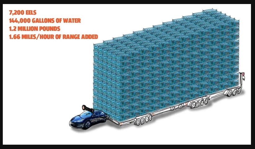 An electric-eel-powered Tesla? Jason Torchinsky does the math at Jalopnik.