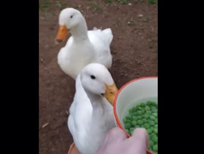 It took mere seconds for this pair of famished waterfowl to devour a bowl of peas. I wonder if there was a tragedy of the commons writ small thing happening here? Like, if only one duck was present, maybe it would have slowed down to savor the delicate flavor of the viridescent legumes.