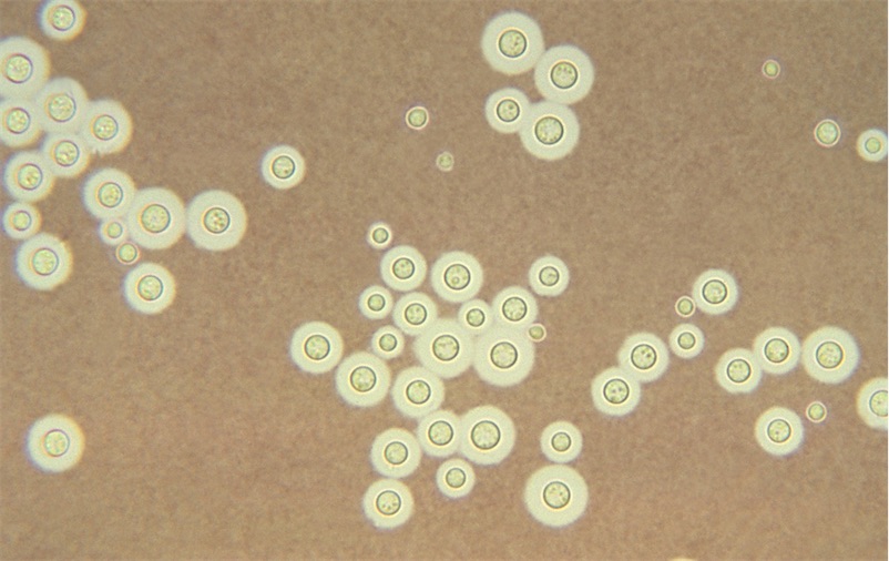 image: "Cryptococcus neoformans stained with light India ink," CDCP (public domain)