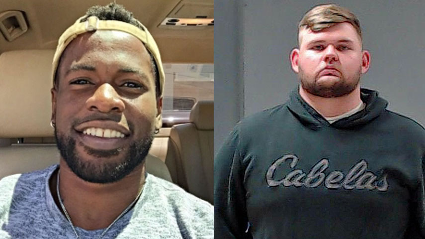 Jonathan Price (left) tried to separate a fighting couple outside a gas station in Wolfe City, Texas on Saturday. Local cop Sean David Lucas (right) arrived on the scene and executed him on the spot. Lucas was today charged with the murder.