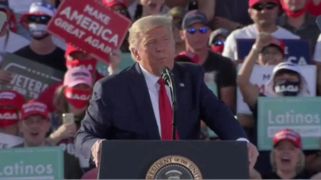 Trump has repeatedly said at recent rallies he felt like Superman after recovering from COVID-19, but Monday marked the first time such a chant erupted for the president. The crowd also chanted "USA" at the Monday rally and "we love you," to which Trump responded: "don't make me cry."