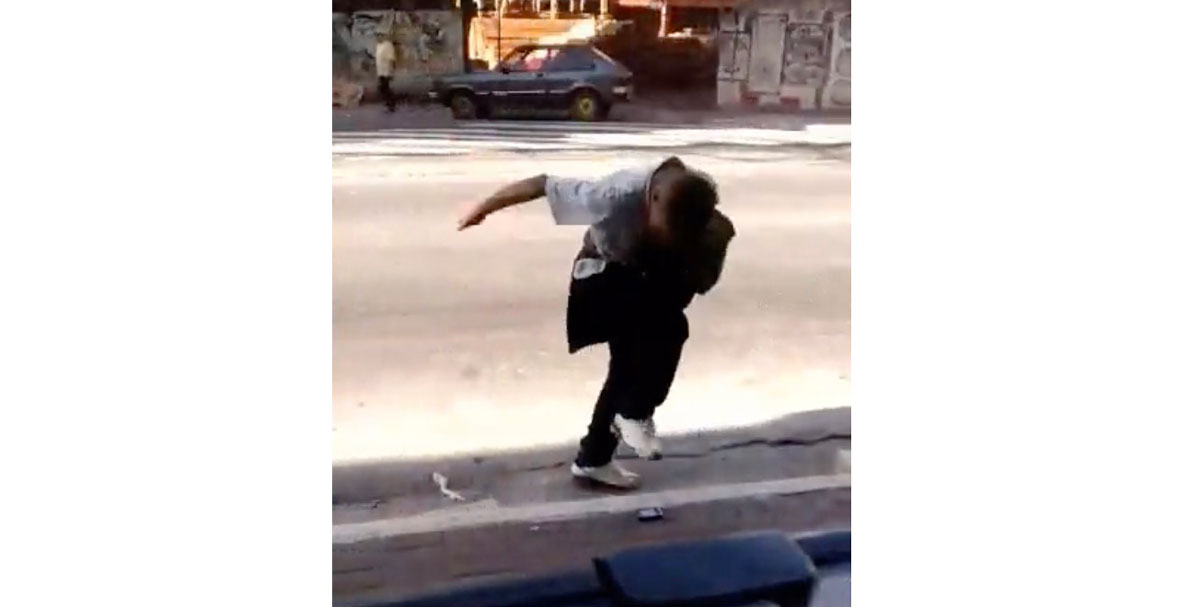 Apparently someone thought it would be funny to glue a phone to the sidewalk but it only angered this person, who administered a beating to the phone and shot an accusatory look at another person tried to pick up the phone at the same time but graciously deferred to this fellow.