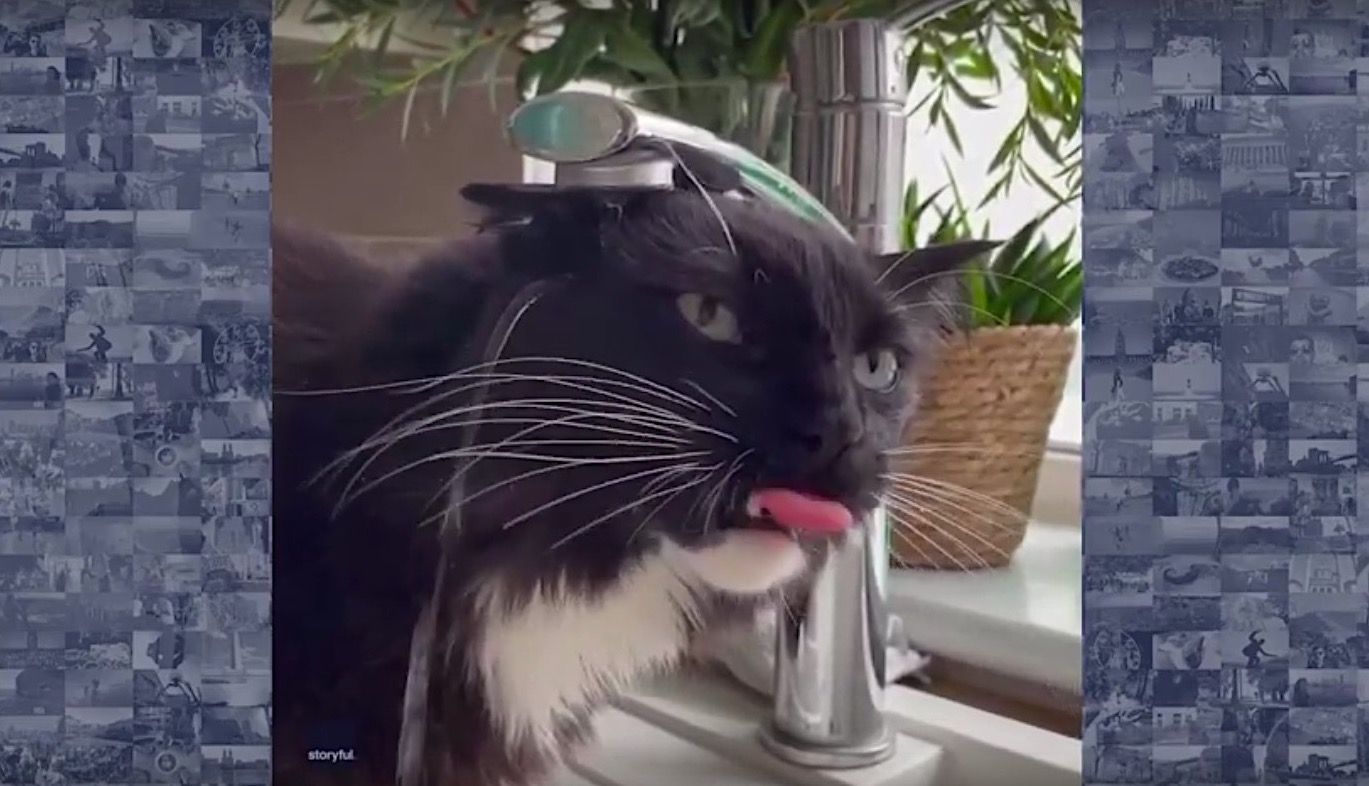 This cat can't get it right. Every day it insists on drinking from the faucet, according to its owner (from the YouTube page). But once the faucet is turned on, the cat takes a long swig of air instead.