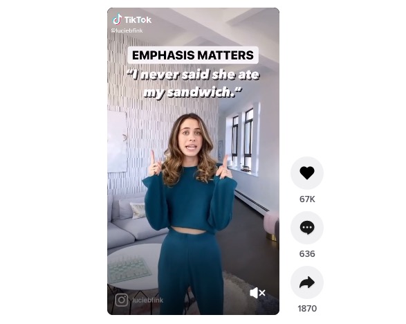 "I never said she ate my sandwich" has seven meanings depending on which word you stress