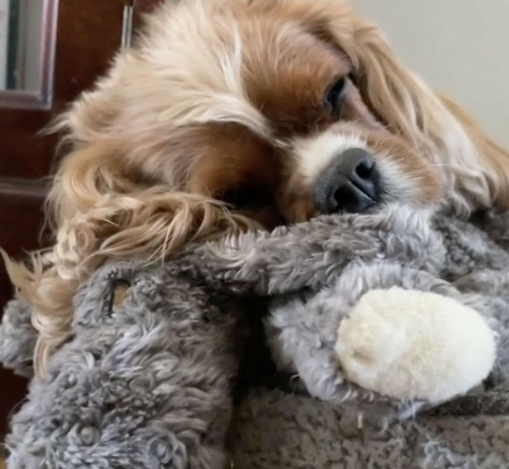 When not getting into trouble, Pretzel is pretty good at snoozing.
