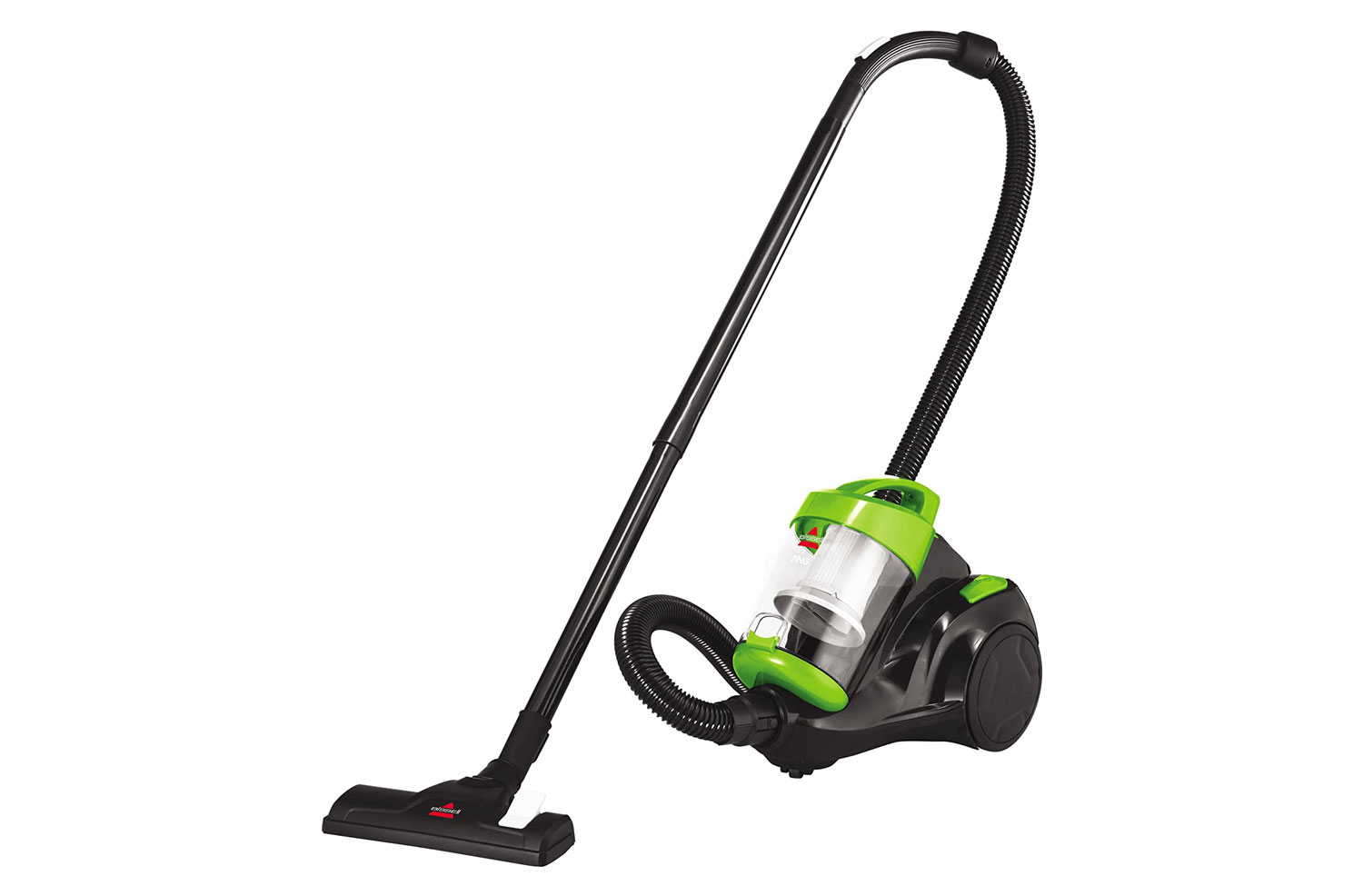 The Bissell Zing Canister (model 2156A) was inexpensive and it exceeded my expectations. It is bagless, quieter than any other vacuum cleaner I've owned, and has powerful suction. It's great for hardwood floors (I don't know how well it works on carpeting since we don't have any).