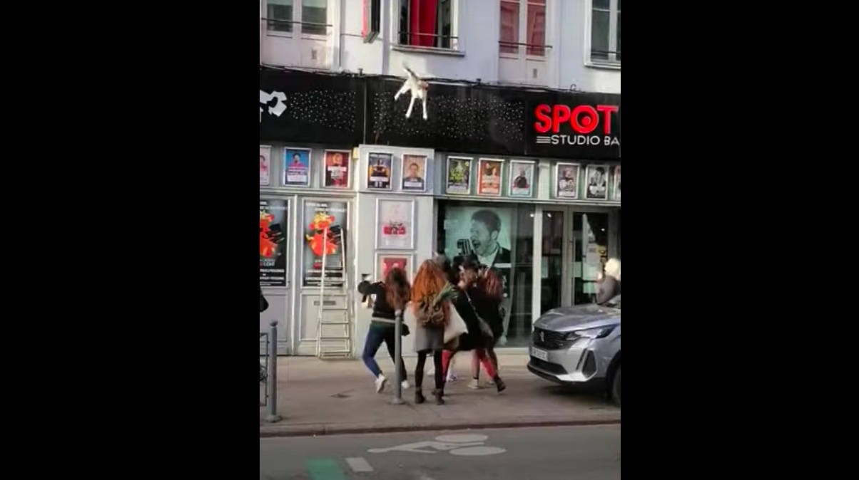 Watch a dog fall from 2nd-floor window, nearly get hit by a car, and then walk it off like a champ