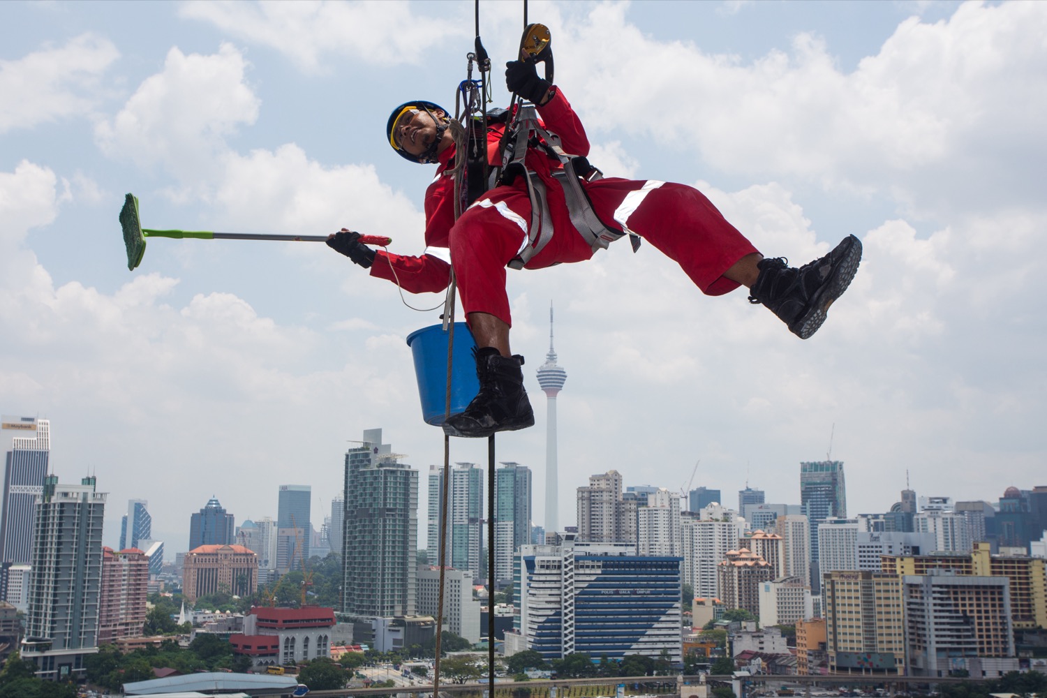 This cat correctly assumes that a man ascended 300 feet on the outside of a building to play with it.