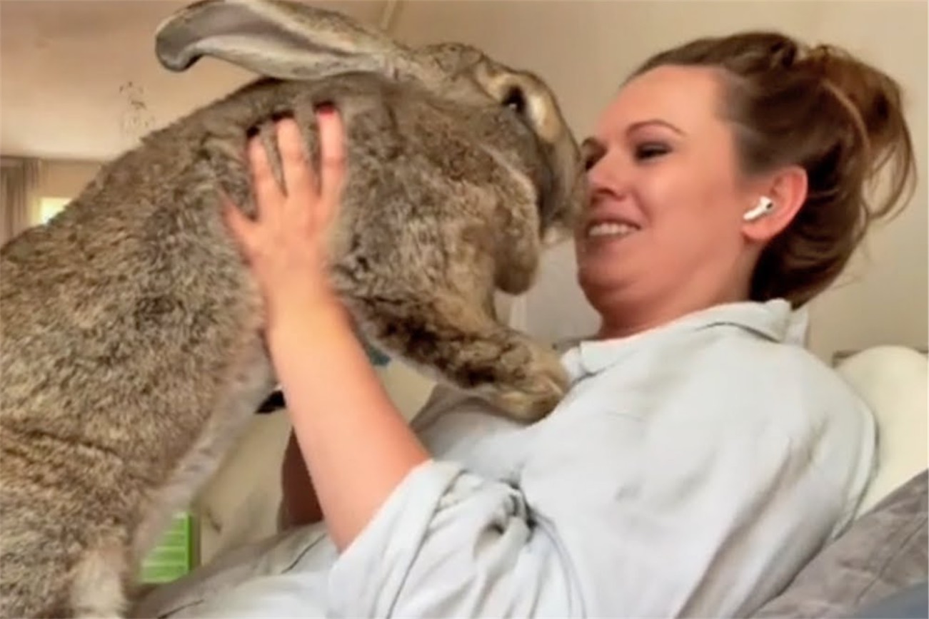 This is Guus, a two-and-a-half year old Flemish Giant rabbit who lives in Amsterdam. The Flemish Giant is the world's largest breed of domestic rabbit. Guus weighs more than 22 pounds and, according to his caretaker Danielle, his behavior "is very similar to a dog, which was unexpected." His favorite activities include playing fetch and cuddling. And eating, of course.