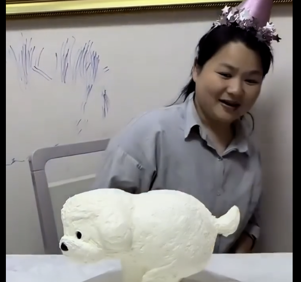 The celebrant's thumbs up is classic, and her disgust is obvious. I hope the creamy chocolate filling is delicious and she finds many occasions to wear that festive chapeau.