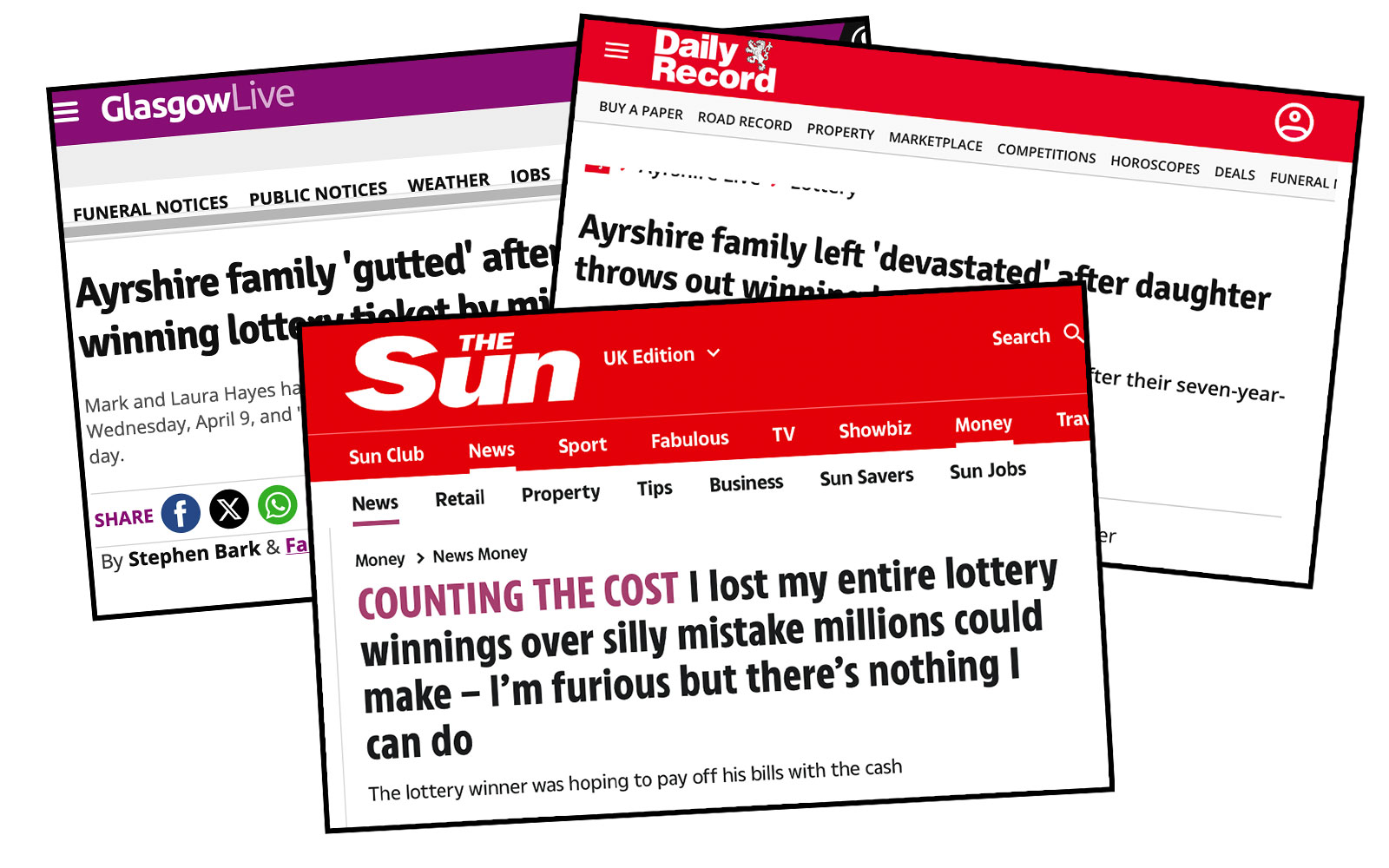 A third story featured Aberdeen man Liam Carter who allegedly discovered a lottery ticket in a drawer after his mother's death and which ran in dozens of outlets, including Aberdeen Live, Lancashire Eveing Post, Daily Record, the Daily Mail, the Daily Mirror, Metro and Daily Express. In each case, experts from the gambling site … offered advice on what to do in such cases (and the business received links in the articles, which are valuable for SEO purposes).