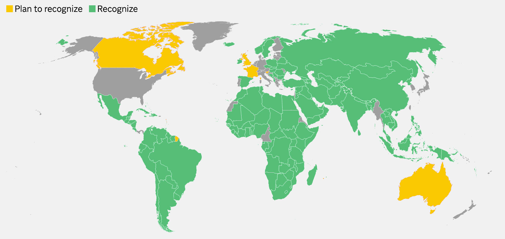 Beyond Israel, the map of countries still averse to recognizing a Palestinian state includes the United States, Japan, Italy, Finland and Germany, where unconditional support is a constitutional issue.