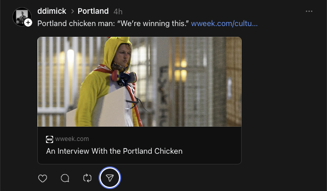 It also dismantles their narrative a little bit. When they try to describe this situation as "war-torn," it becomes much harder to take them seriously when they have to post a video saying [U.S. Secretary of Homeland Security] Kristi Noem is up on the balcony staring over the Antifa Army and it's, like, eight journalists and five protesters and one of them is in a chicken suit.