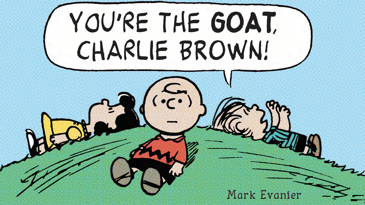 As cleverly implied by the book's cover, it's fitting that the term "goat" meant loser in Charlie Brown's time, but it now means the Greatest Of All Time.